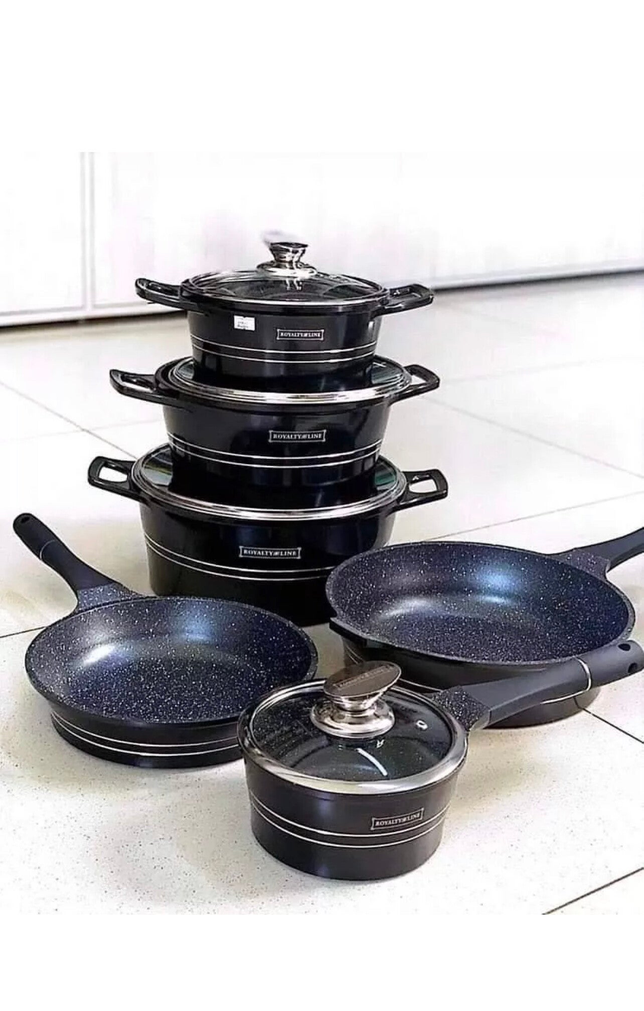 ROYALTY LINE SET 14 PEZZI IN PIETRA PENTOLE PADELLE ,NERO.
